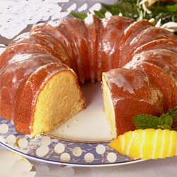 HORNEA durante 50 a 55 minutos o hasta que insertes un palillo de dientes en la masa y salga limpio. Refría en el molde encima de una rejilla de alambre por 10 minutos. Combina el azúcar glasé y el jugo de limón en un tazón pequeño. Agujerea el panque con un palillo de madera; vierte la mitad del glaseado de limón en el panque. Deja enfriar por 5 minutos. Inviértelo en un plato. Agujerea la parte superior del panque; vierte el glaseado sobrante sobre éste. Deja enfriar completamente antes de servirlo.